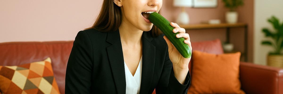 Faute de sex-toy classique, l'homme saisit un objet du quotidien : un concombre. Ce choix illustre un accident sexuel avec objet détourné, typique de ces situations où l'on sous-estime les dangers. En utilisant ce légume comme sex-toy improvisé, le couple s'expose à des risques d'étouffement pendant les jeux sexuels. Ce type de pratique érotique risquée montre à quel point la banalité d'un objet détourné peut masquer un potentiel d'accident grave, surtout en l'absence de conseils de sécurité clairs.